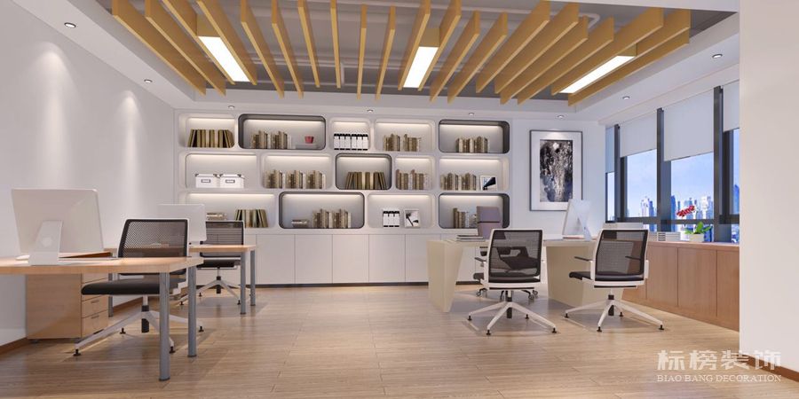 ?。?)預算800-1500元/㎡,可以做有設(shè)計感的裝修這個價位的預算,會用來打造異形造型來塑造設(shè)計感,地板/地毯、墻面、漆材質(zhì)也會用更好的。單一顏色較便宜的地毯可以換成拼花、花紋、腳感較好的地毯。墻面可以做純木飾面或切割出有設(shè)計感的造型,也可以使用燈帶。獨立辦公室可以采用木質(zhì)定制柜,與環(huán)境更統(tǒng)一。封閉空間可以做吊頂,甚至可以做吊頂造型,開敞空間可以做局部吊頂增加設(shè)計感。